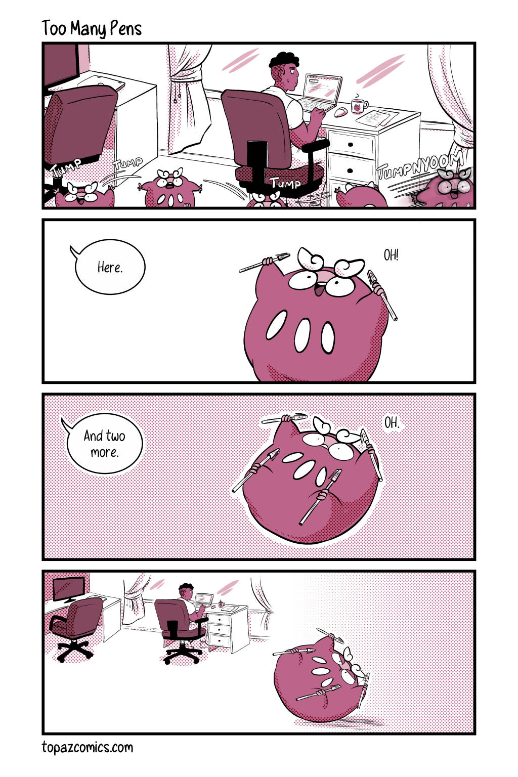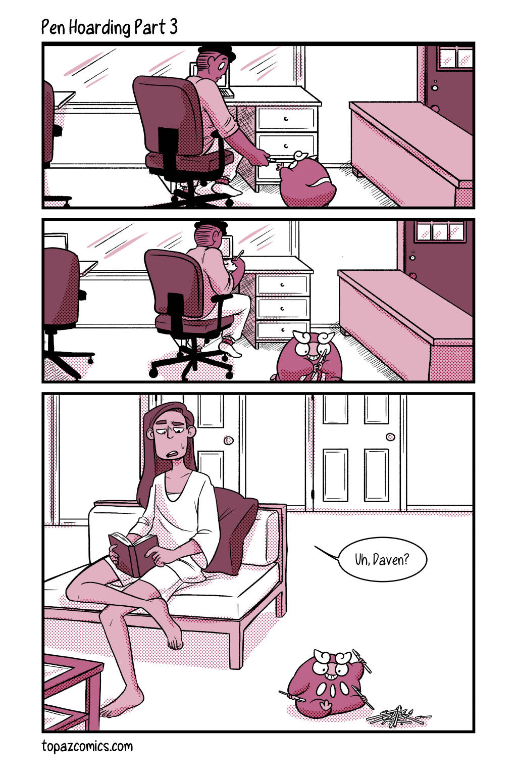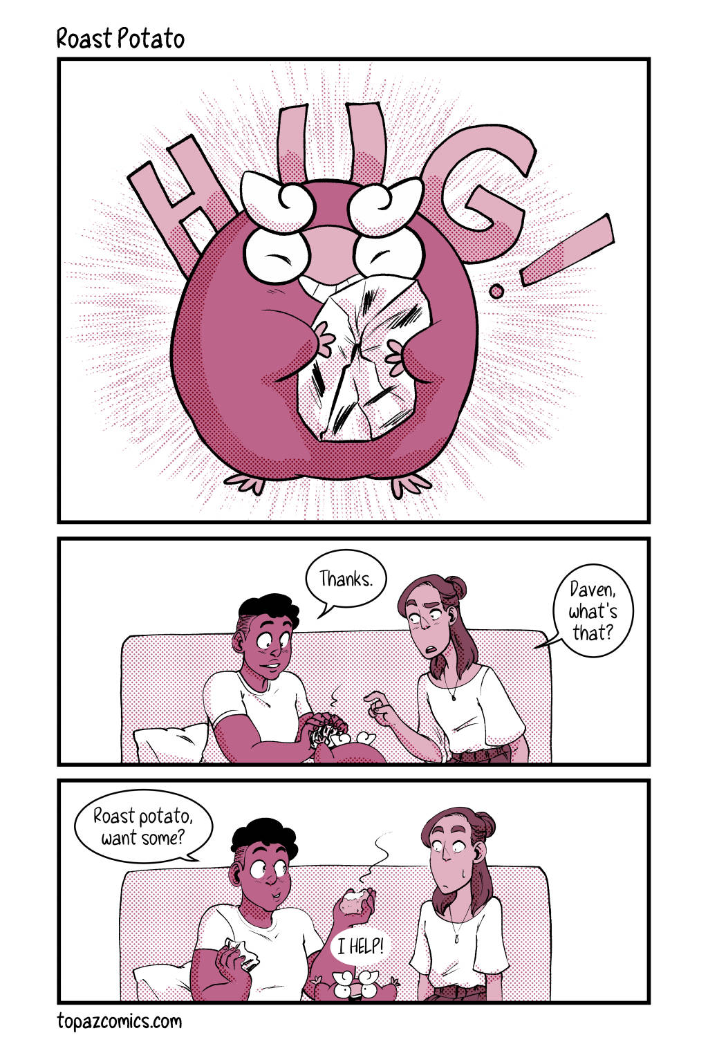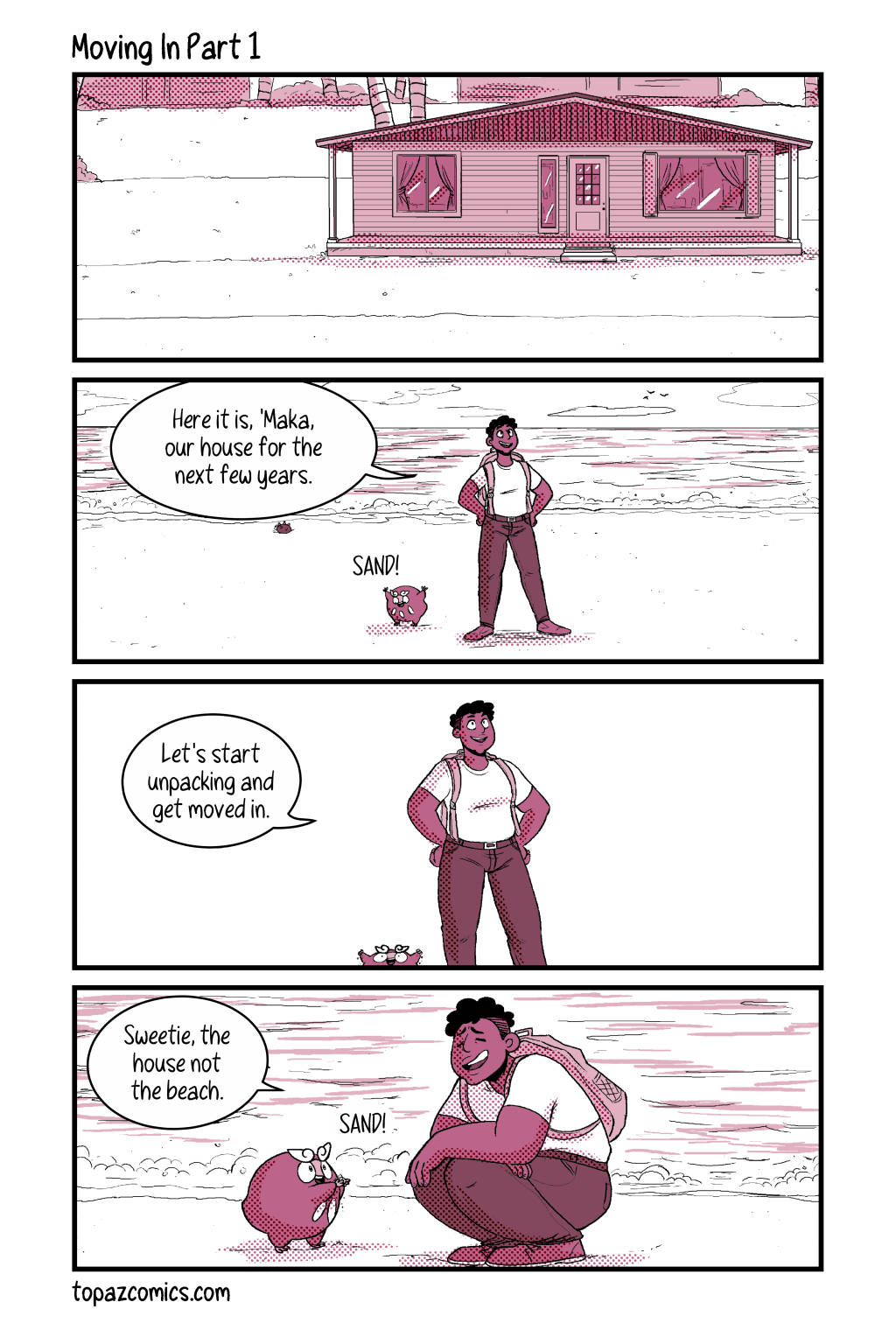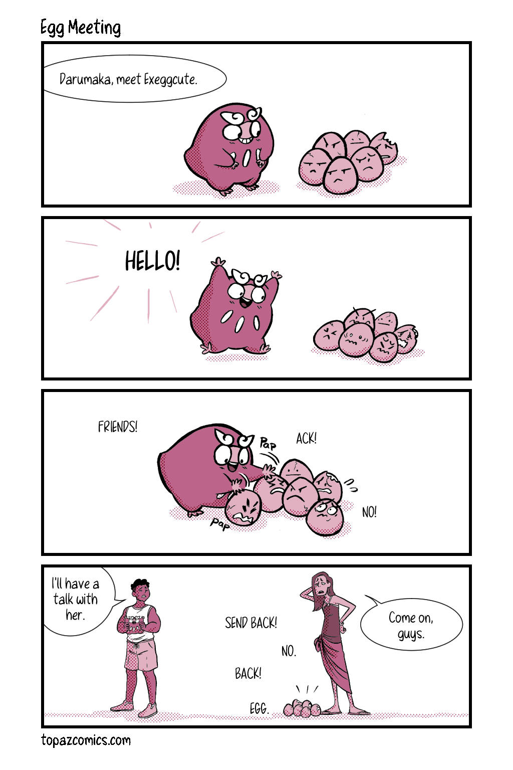 Your sneak peak page for this week and–Darumaka has finally arrived, along with her handsome partner Daven! Michelle and I are super excited to continue sharing this comic with you for this month, we hope you like what we have so far! Tune in next week for the last preview page!