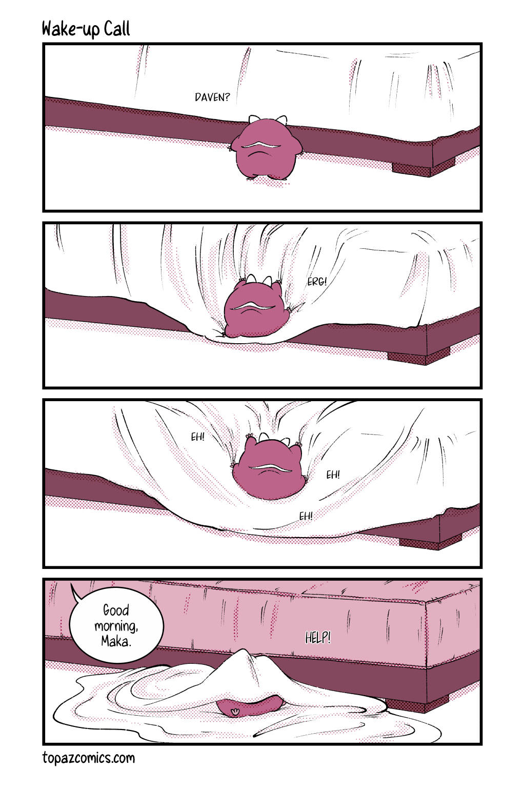 She’s pretty heavy so she can’t quite use the blanket to climb up onto the bed For just $1/month you can see these pages 2 months before they’re posted here (including sketches and thumbnails) on Patreon!