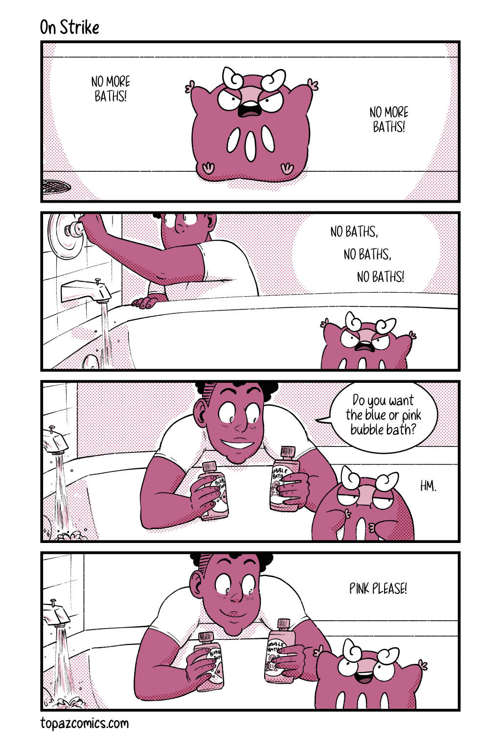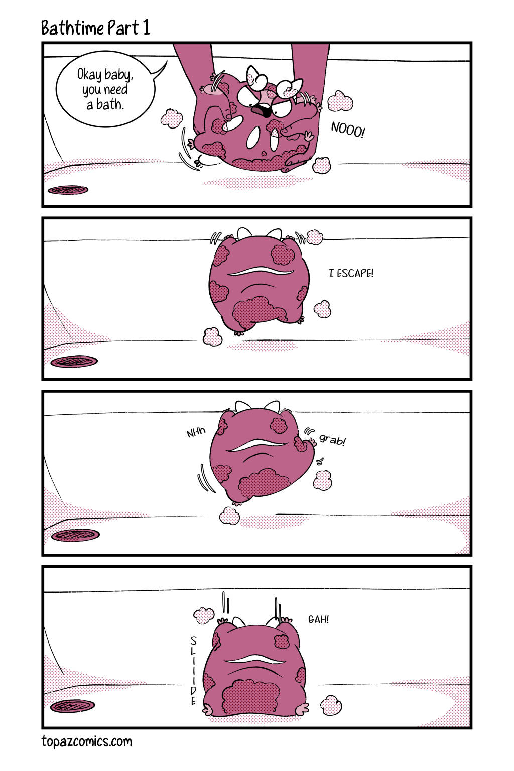 She really dislikes baths… until she doesn’t. For just $1/month you can see these pages 2 months before they’re posted here (including sketches and thumbnails) on Patreon!