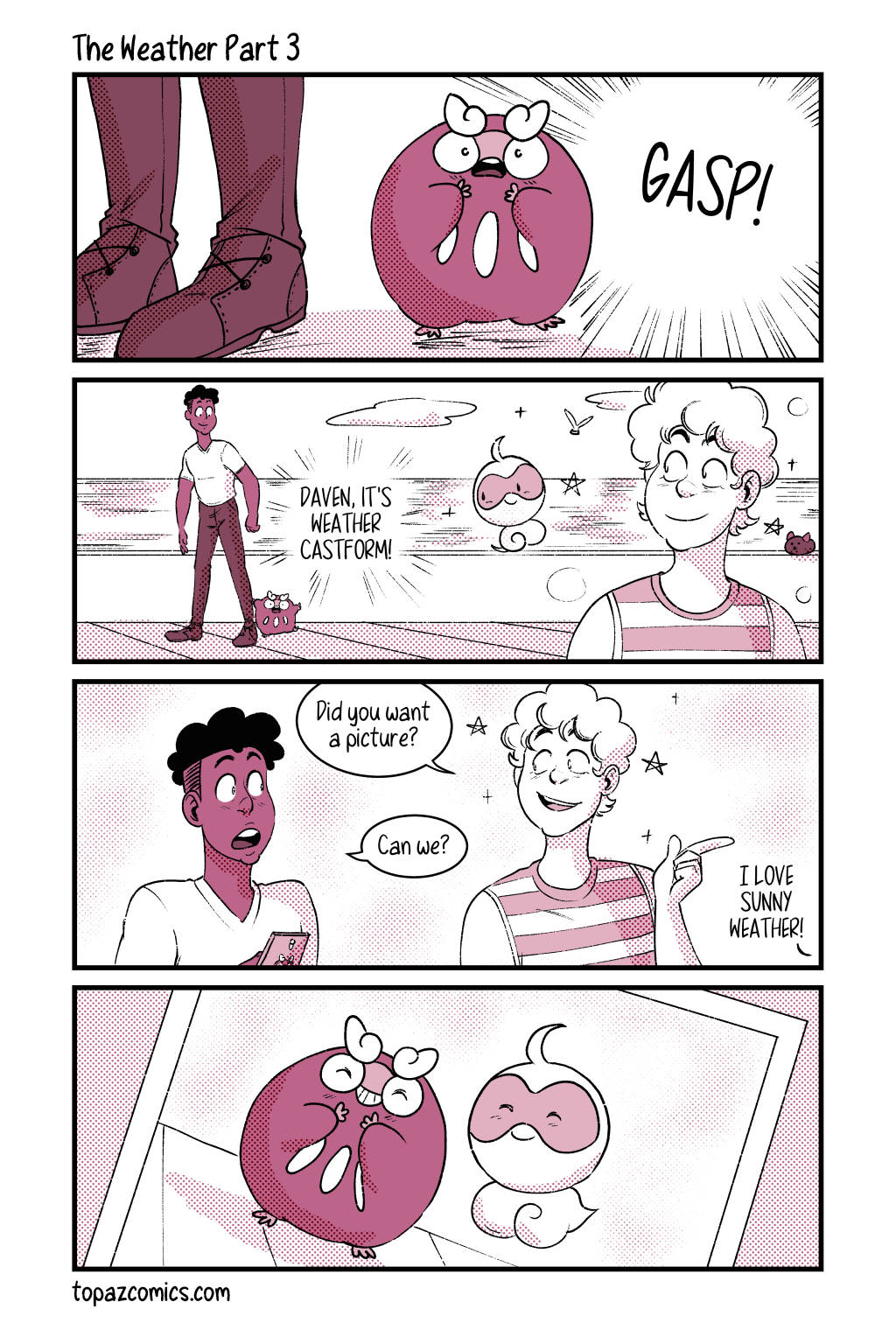 Another three-parter where Maka is a big Castform fan! For just $1/month you can see these pages 2 months before they’re posted here (including sketches and thumbnails) on Patreon!