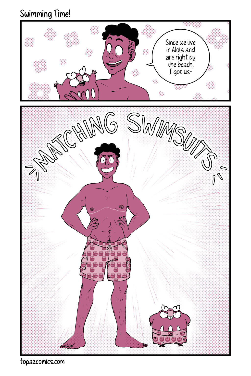 How I wish I could own some Darumaka themed swimtrunks. And here’s a better look at Daven’s top surgery scars too! For just $1/month you can see these pages 2 months before they’re posted here (including sketches and thumbnails) on Patreon!