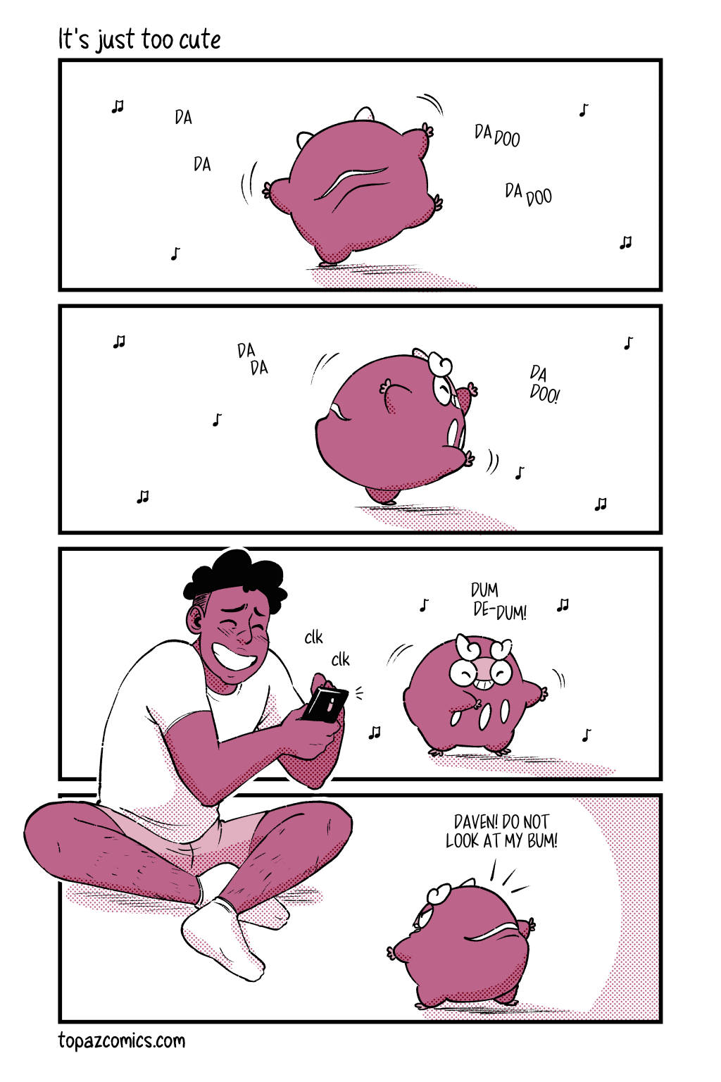 Sometimes you just have to take pictures of her wiggling butt. For just $1/month you can see these pages 2 months before they’re posted here (including sketches and thumbnails) on Patreon!