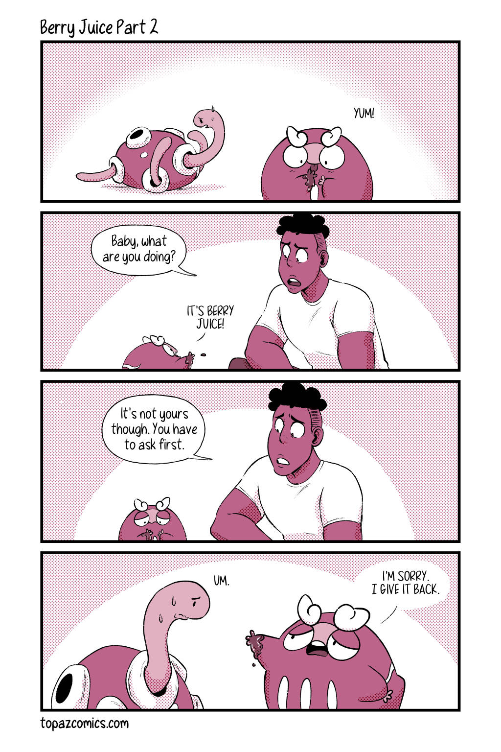 Part 2 of 2, just because someone makes juice doesn’t mean you can just take some. For just $1/month you can see these pages 2 months before they’re posted here (including sketches and thumbnails) on Patreon!