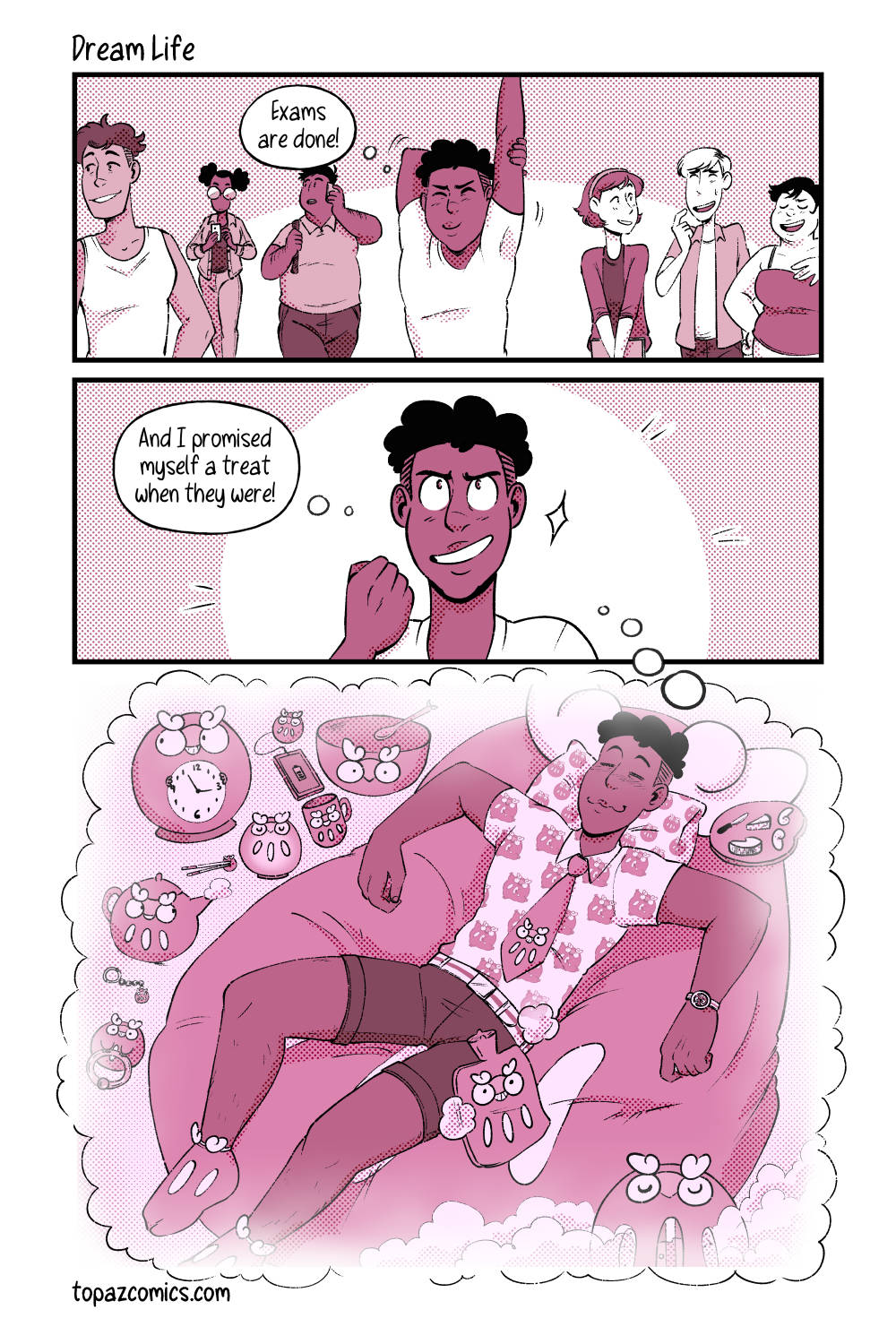 In which we learn that Daven is like that one friend who’s really into dolphins and their house is just dolphin paraphernalia. Except in Daven’s case it’s all Darumaka. Because how can you not?! For just $1/month you can see these pages 1 month before they’re posted here (including sketches and thumbnails) on Patreon and… Continue reading Dream Life