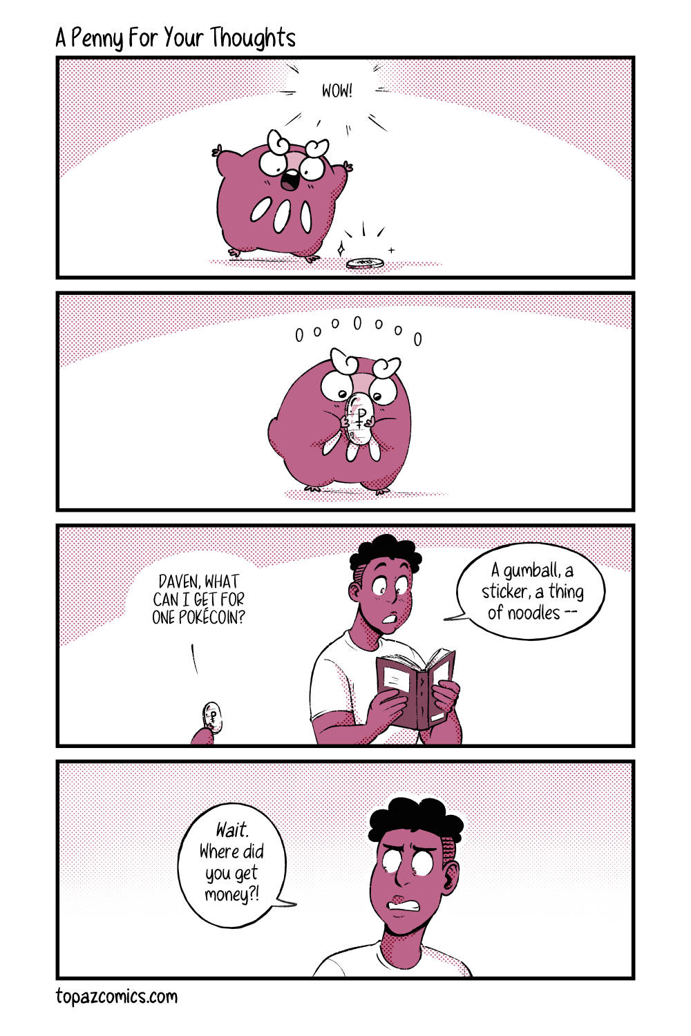 See a pokécoin and pick it up and all the day you’ll be thinking about what to spend it on. For just $1/month you can see these pages 1 month before they’re posted here (including sketches and thumbnails) on Patreon and Kofi
