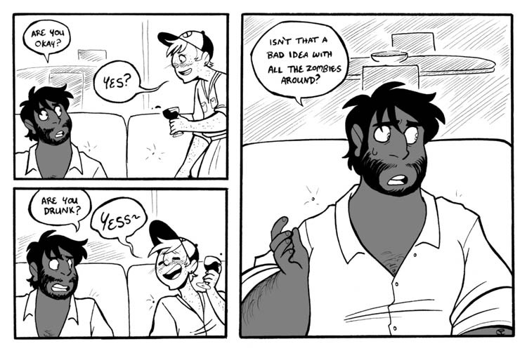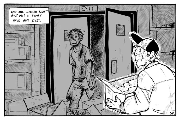 The last time we saw a zombie was… oh you know… chapter 10 Thank you for joining us for our guest comic hiatus, and thank you to the guest comic artists! This was such a good year! We’re back! Regular posts for Dead City on Tuesdays at 12pm EST! — Remember $1+ patrons get to… Continue reading Ch25-7