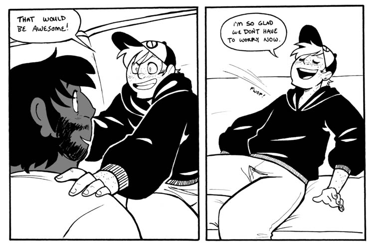 JP finally asks. He’s a bit of a worry-wart. Pledge $1 to our Patreon for early access to comic pages Buy Volume One of Dead City at the Topaz Comics Shop