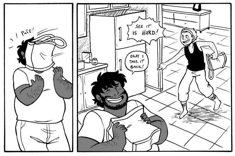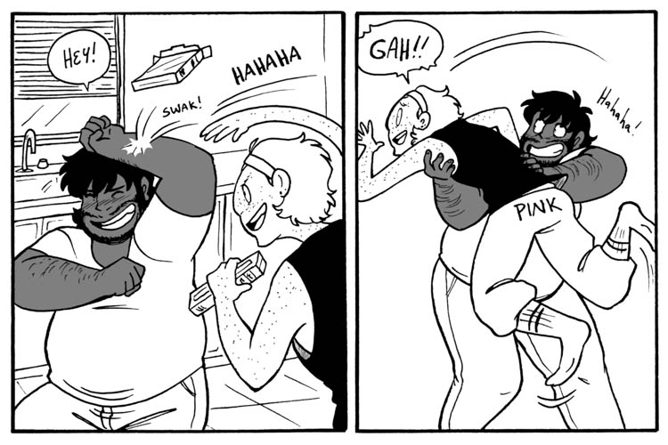 We’re still on vacation but please have this page! They’ve been teasing each other all the way to the kitchen! Pledge $1 to our Patreon for early access to comic pages Buy books and stickers at Topaz Comics Shop