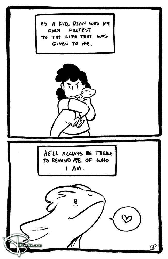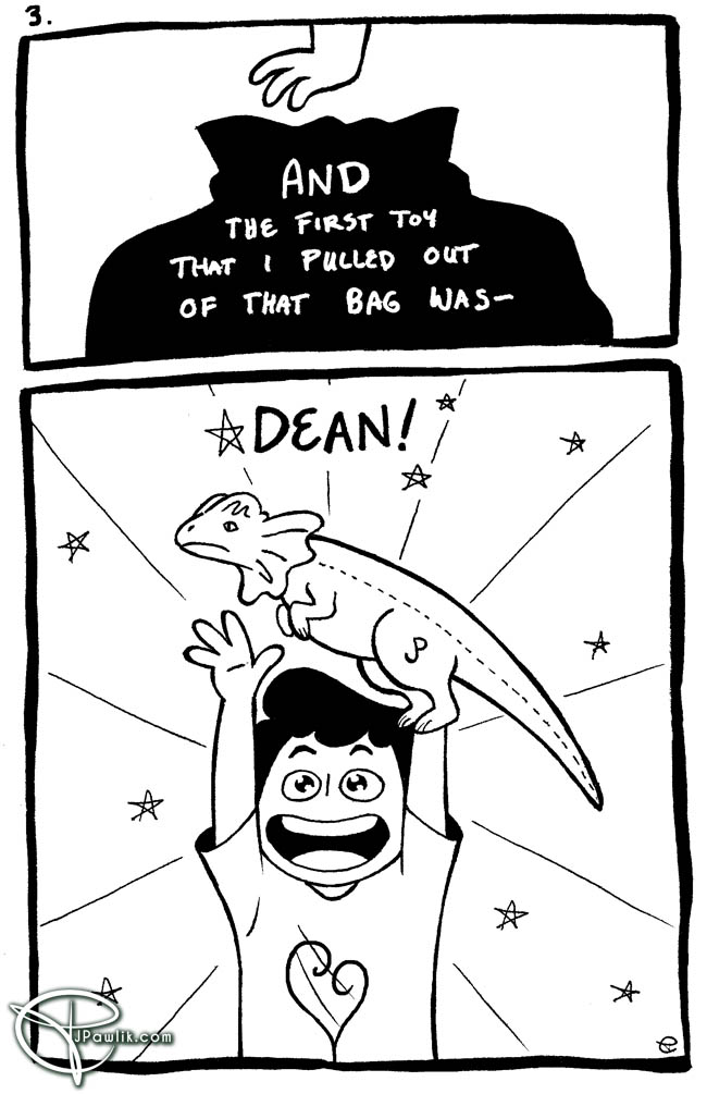 Thus ends the short comic about my toy dinosaur, Dean. Whom I still love very much.