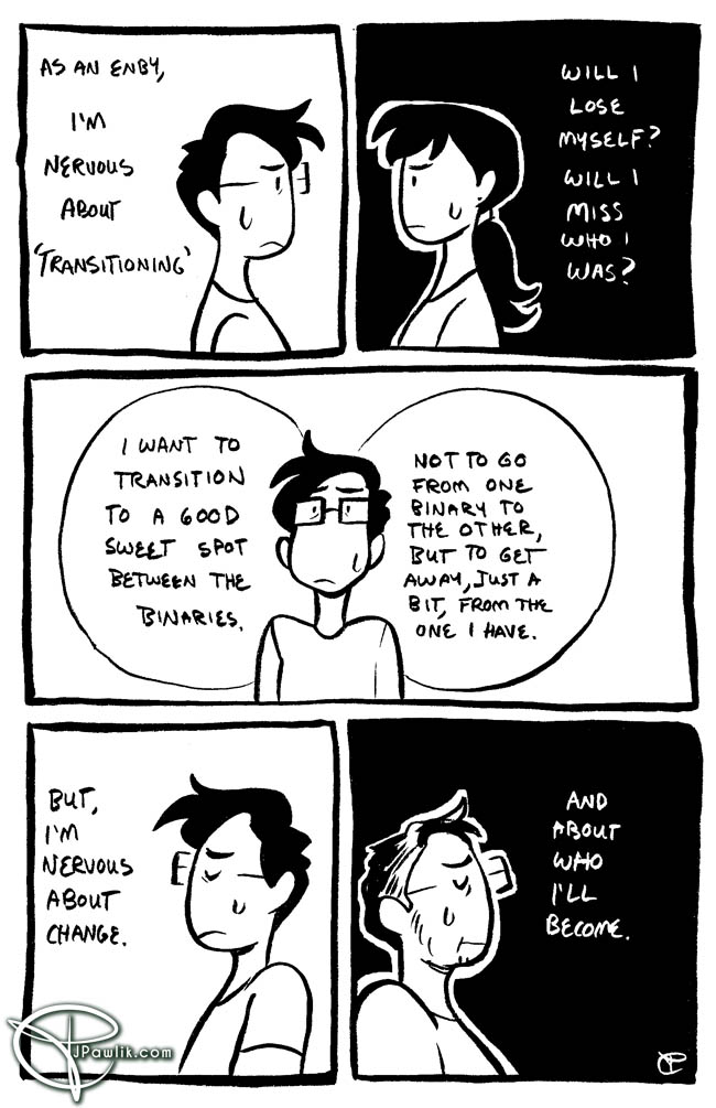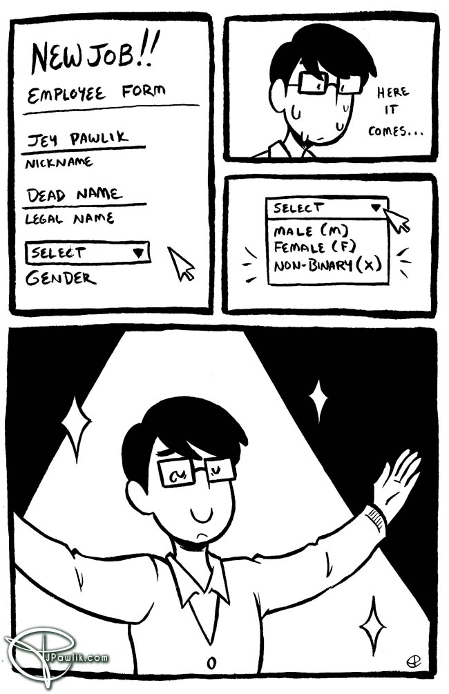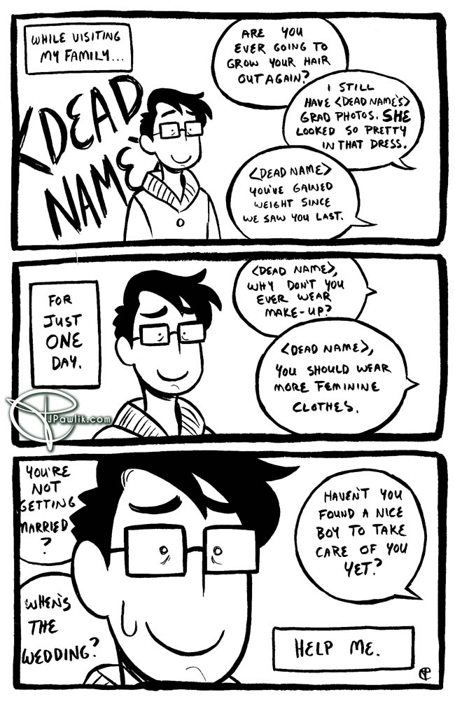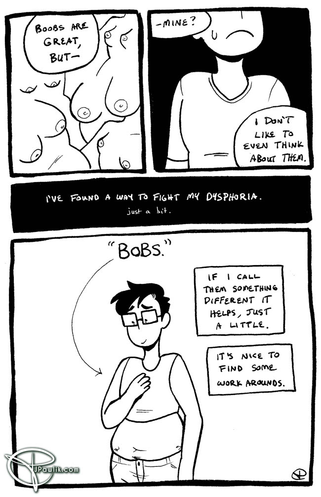 Sometimes giving something a different name or title helps /just a bit/ with dysphoria. It’s not a sure cure, but it helps. Remember you can see Gender Slices comics 2 weeks early on Patreon