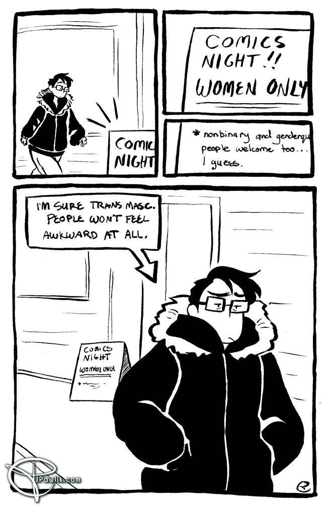 It’s Pride month, and I think this is an important thing to talk about – Women’s only spaces I get invited to Women’s only events often enough, and it’s usually not because they’re misgendering me. It’s more because… I’m not a man. It’s because Women’s only events have that underlining note that “yes other genders… Continue reading 118