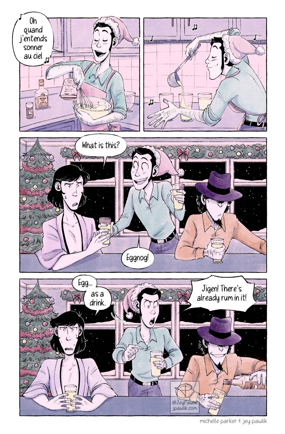 Page 1 of 2. Make sure you click ahead to see the next page! For context: Jigen’s new voice actor is also the narrator of Laid Back Camp (another anime I love dearly) and I had to combine the two! Hey also you can get early access to these and other comics over on Patreon!